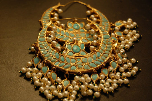 JHOOMAR STYLE EARRINGS IN KUNDAN, PEARLS & GREEN