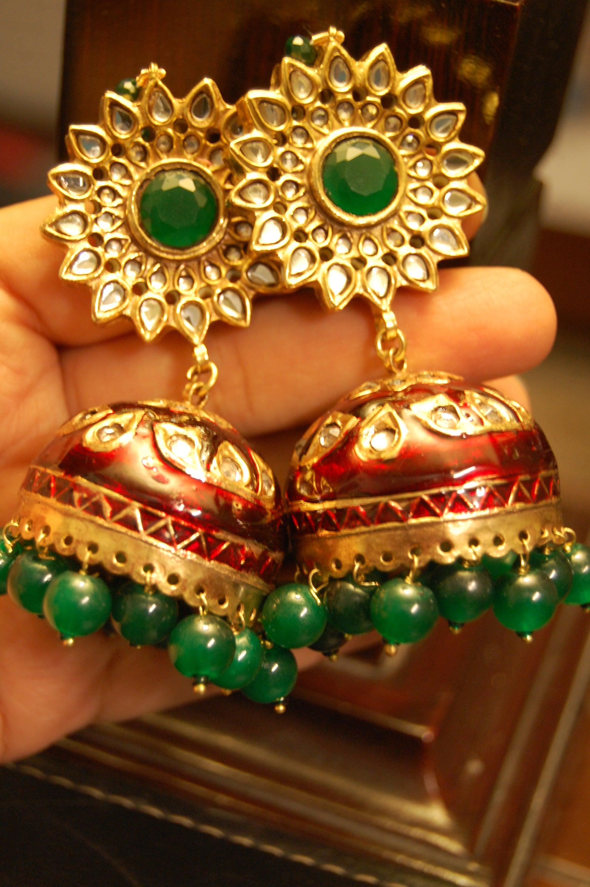 RED MEENA & GREEN KUNDAN JHUMKAS