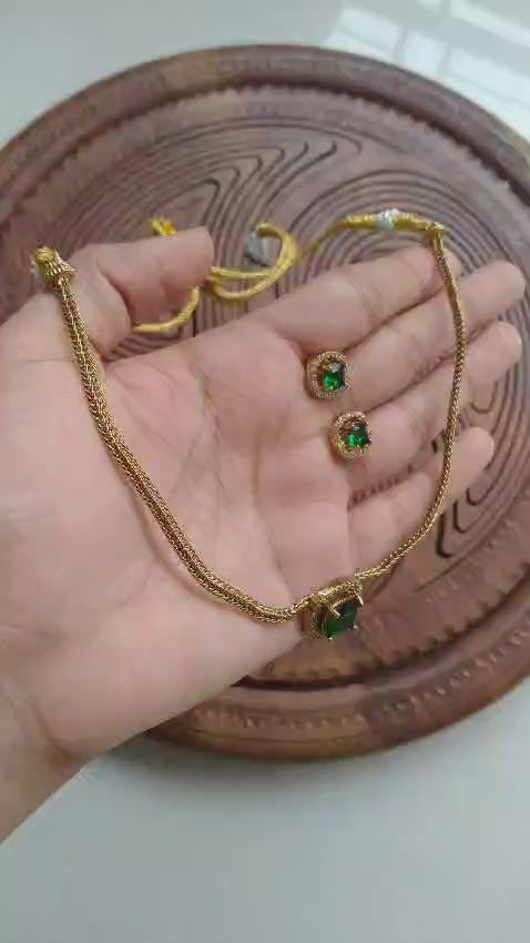 DELICATE EMERALD GREEN & ZIRCON NECKLACE SET