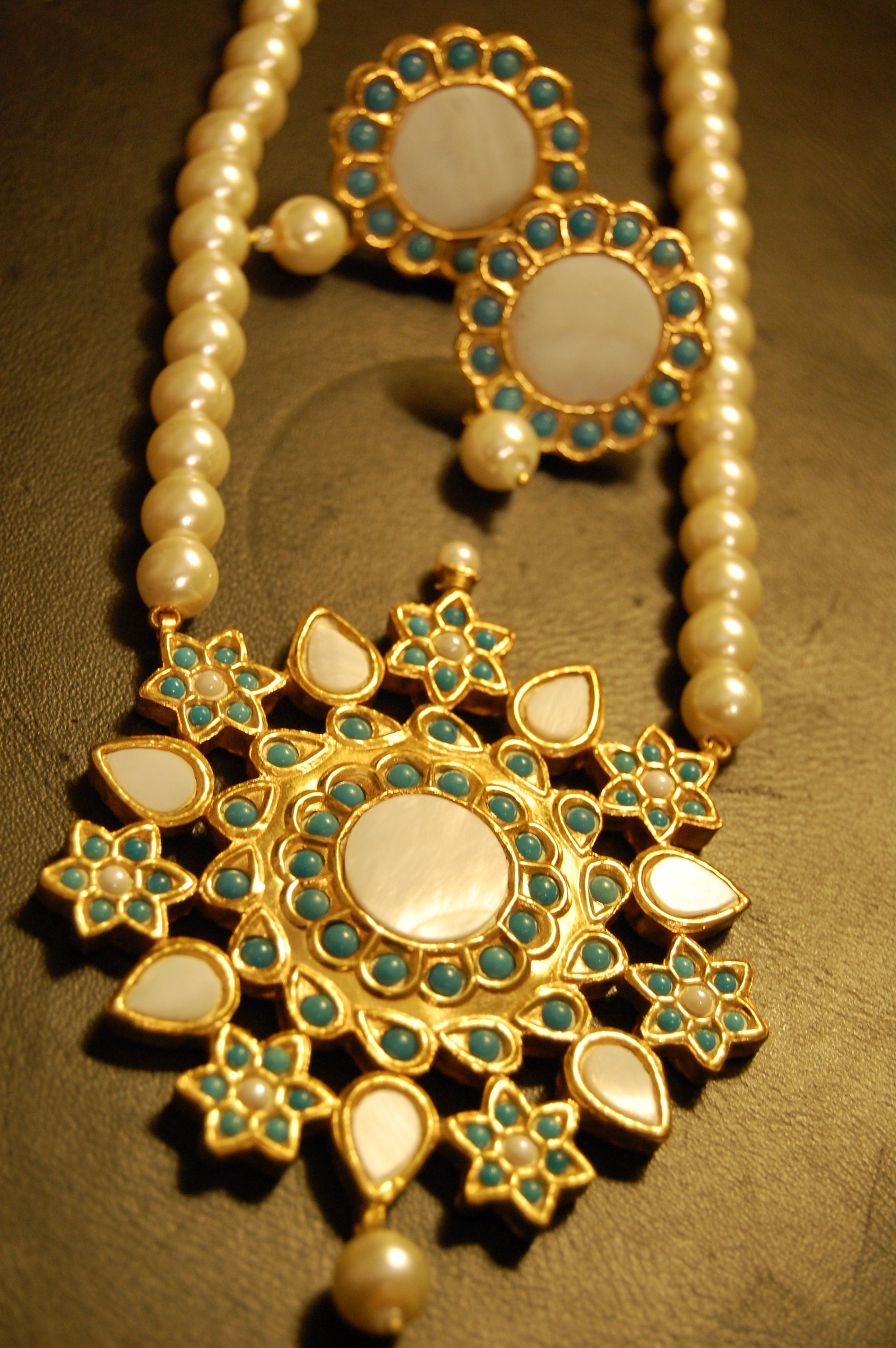 ELEGANT FEROZY & MOTHER OF PEARL MALA SET