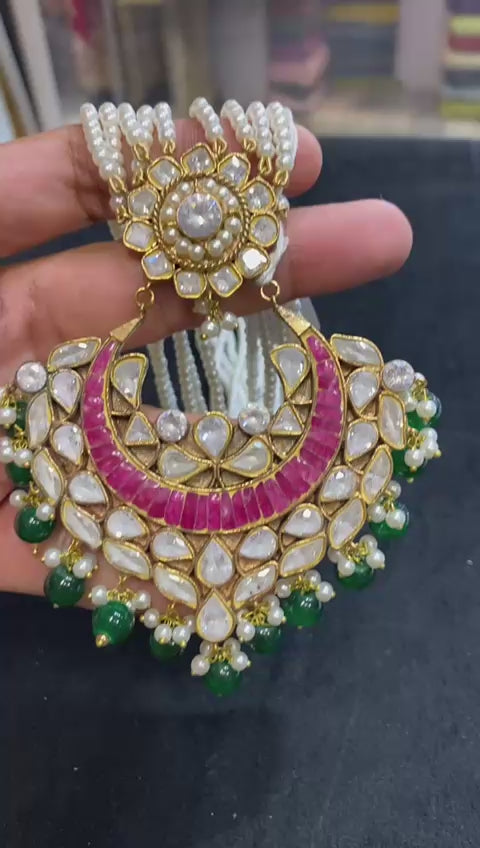 ELEGANT KUNDAN MALA IN RED & GREEN IN PEARLS STRING