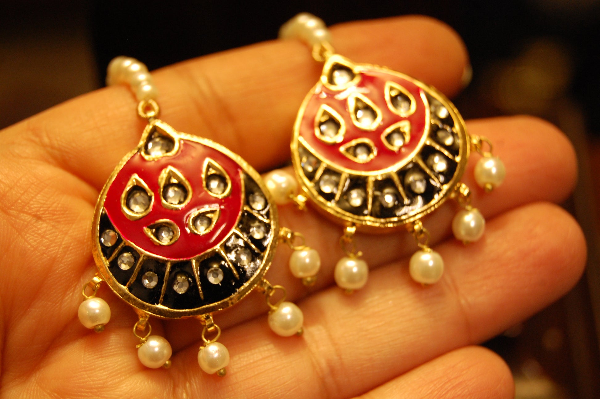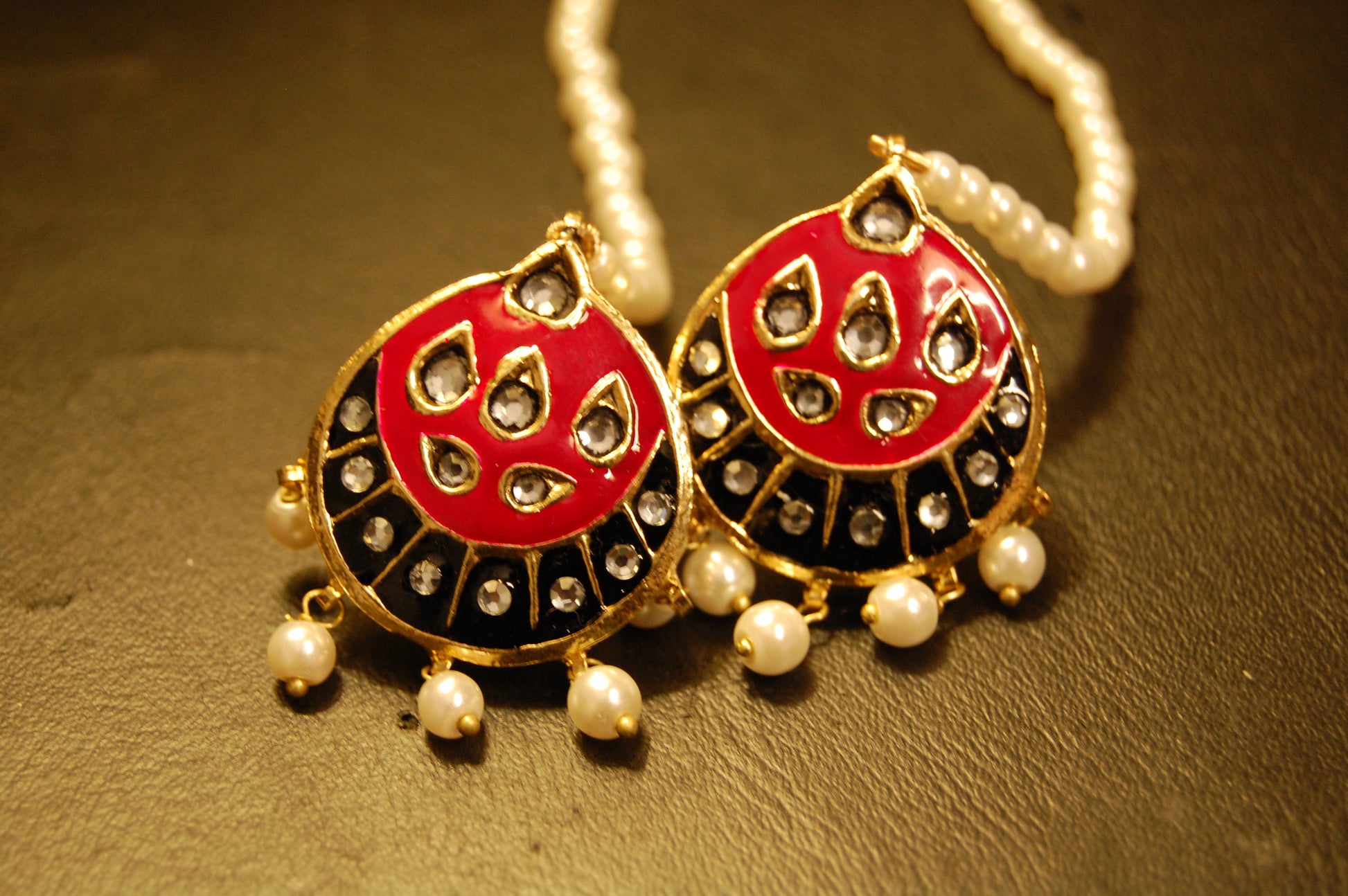 Trendy yet traditional meena & kundan earrings with a touch of pretty pearls