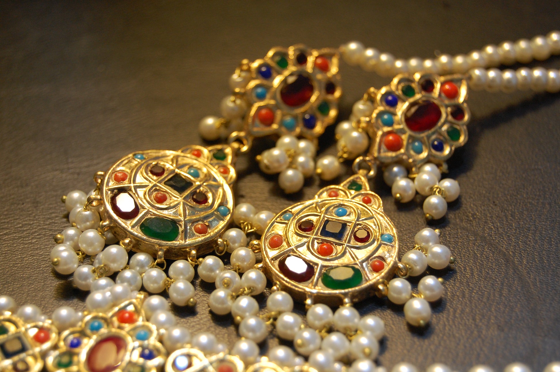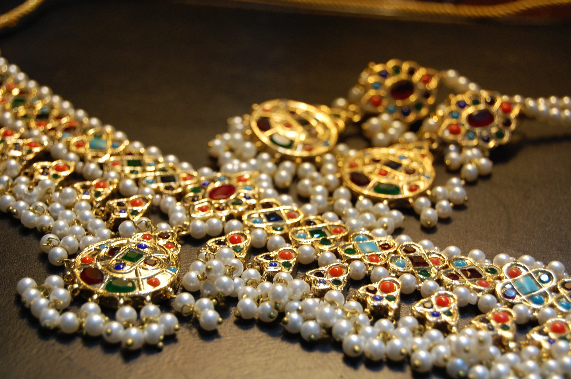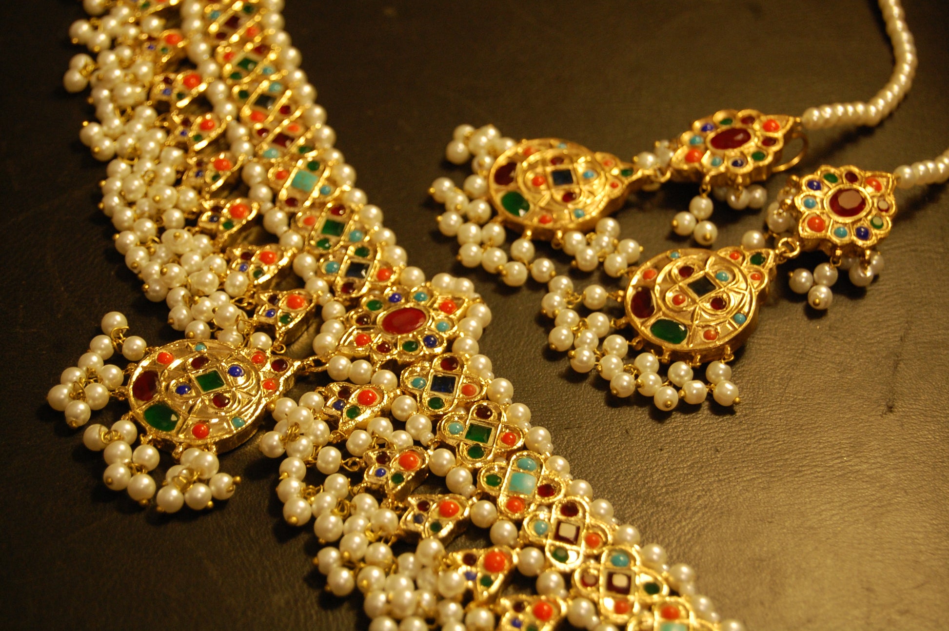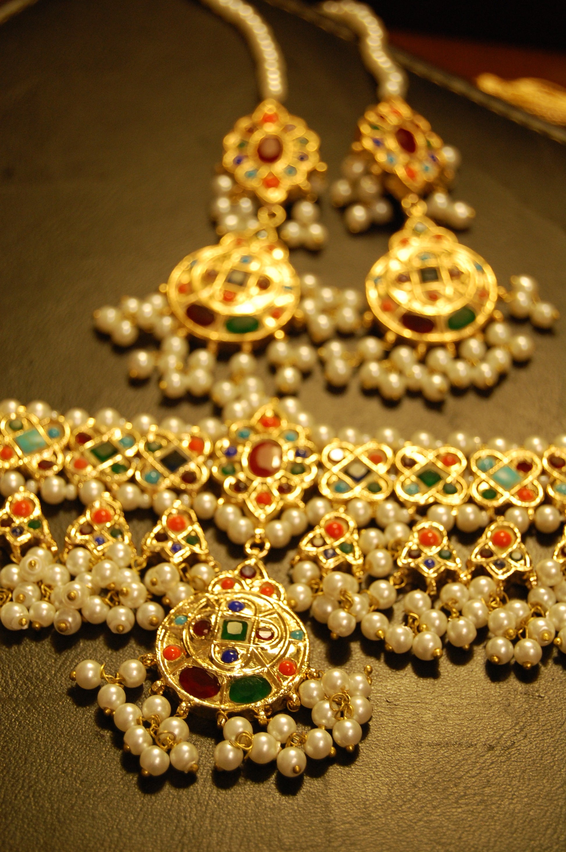 NAURATAN MULTI & PEARLS CHOKER SET