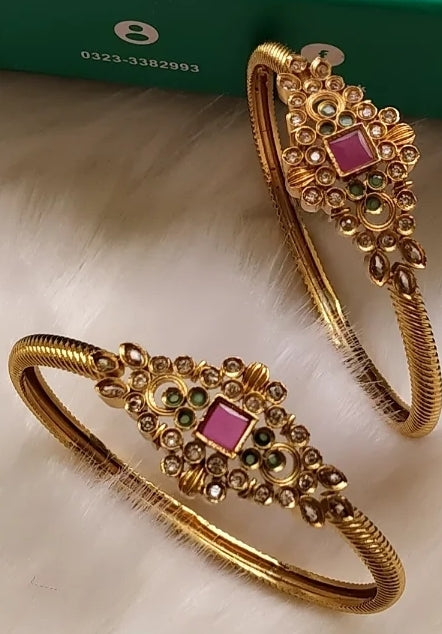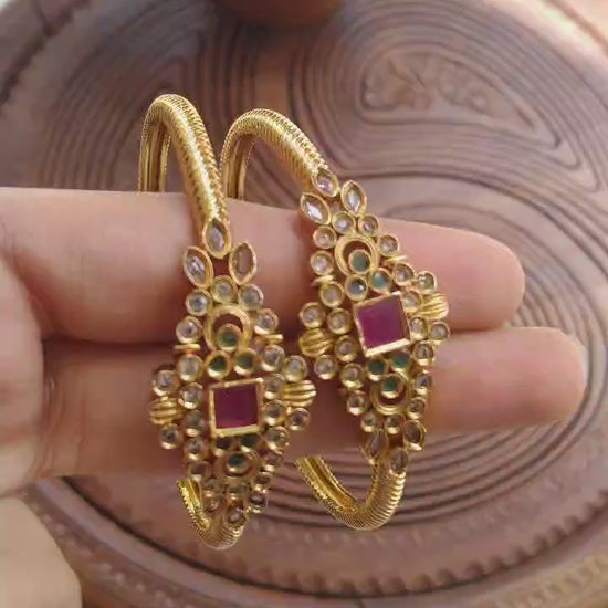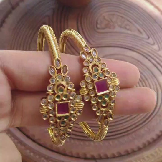 PAIR OF SOUTH INDIAN BANGLES IN RED & GREEN