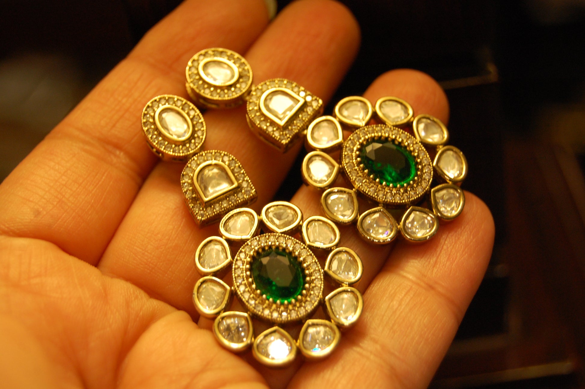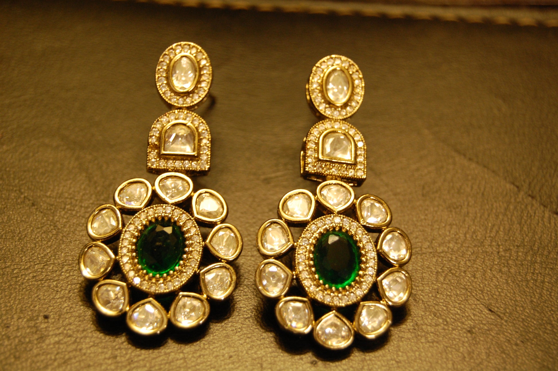 GREEN EARRINGS IN KUNDAN & ZIRCONS