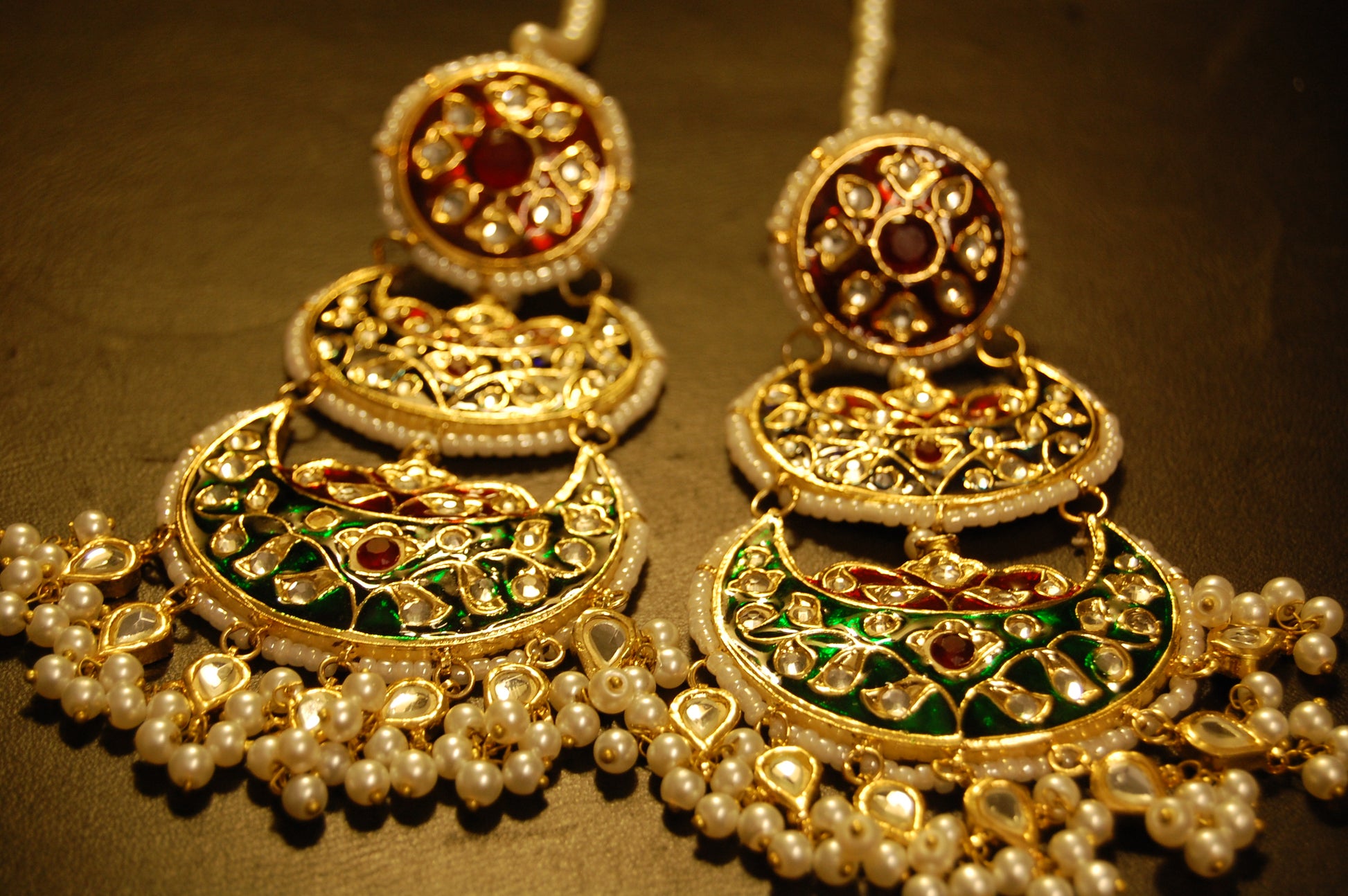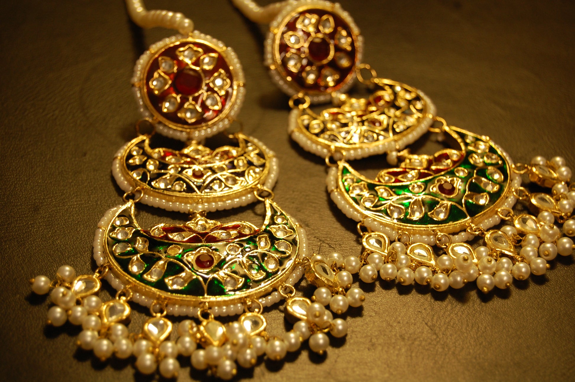 RED BLUE & GREEN MEENA & KUNDAN LONG EARRINGS