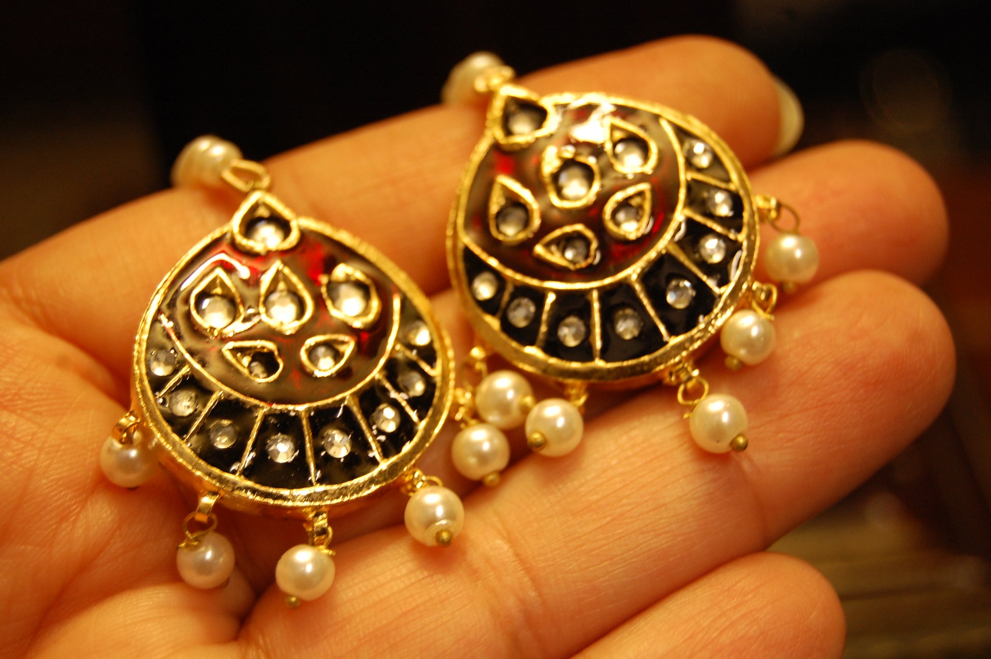 Trendy yet traditional meena & kundan earrings with a touch of pretty pearls