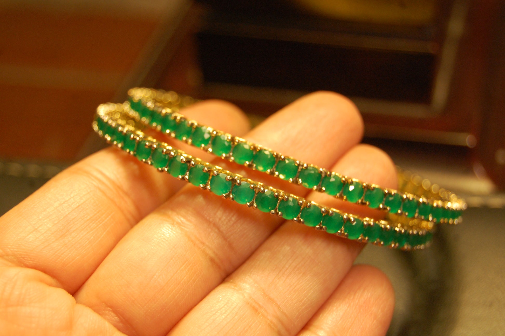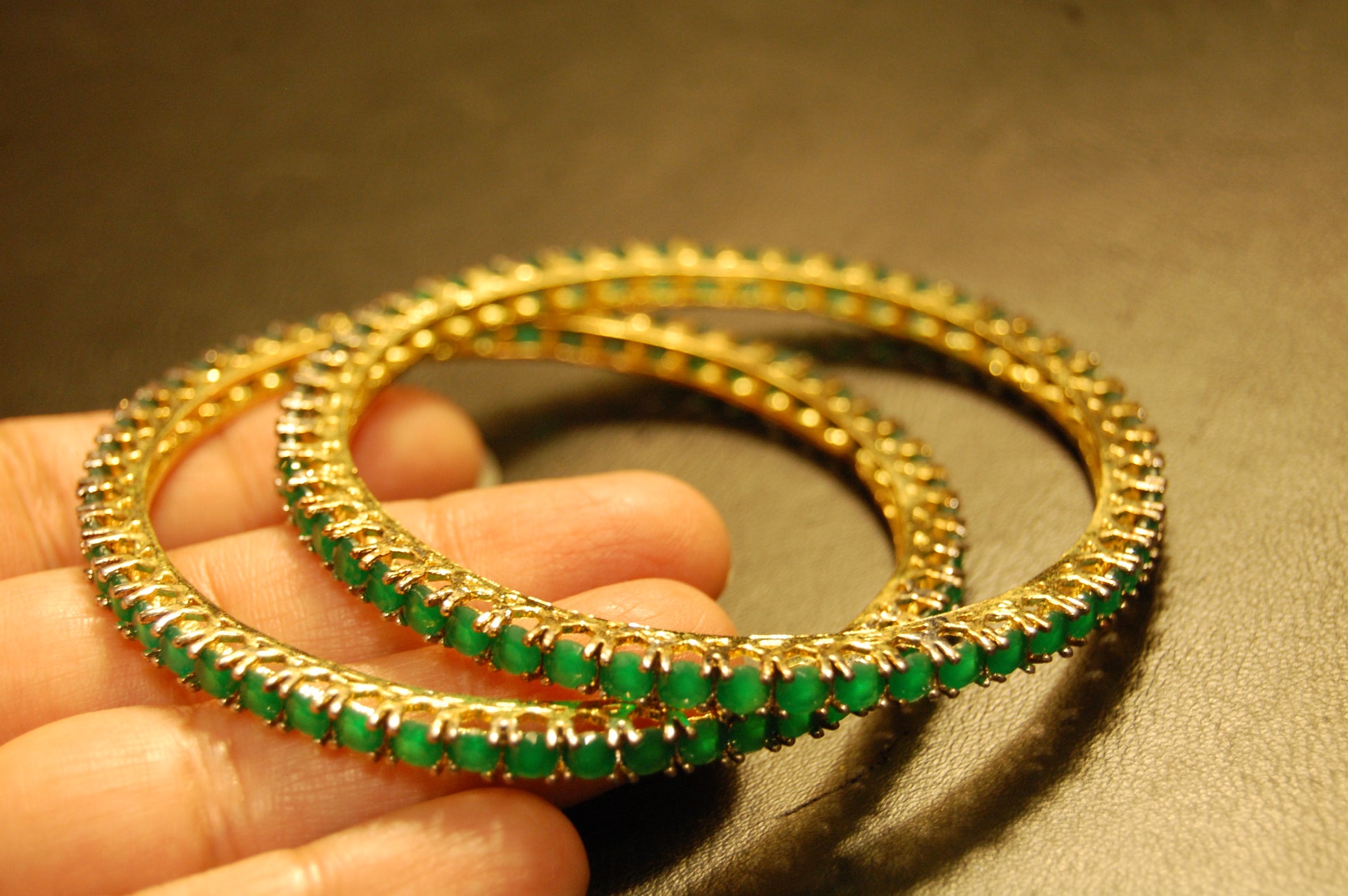 PAIR OF ELEGANT GREEN BANGLES