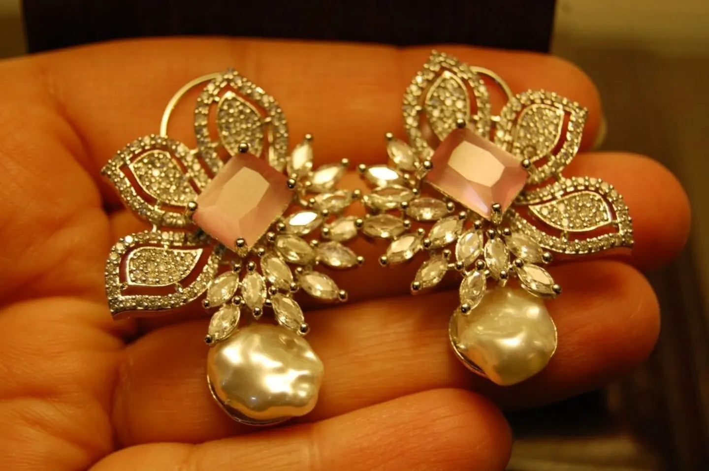 Elegant zircon earrings with gorgeous colored stone & mother of pearl